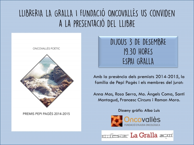 El proper dijous 3 de desembre tindrà lloc a l'Espai Gralla l'entrega de premis de la X edició d'Oncovallès poètic 2014-2015.