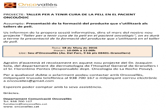 TALLER PER TENIR CURA DE LA PELL EN EL PACIENT ONCOLÒGIC